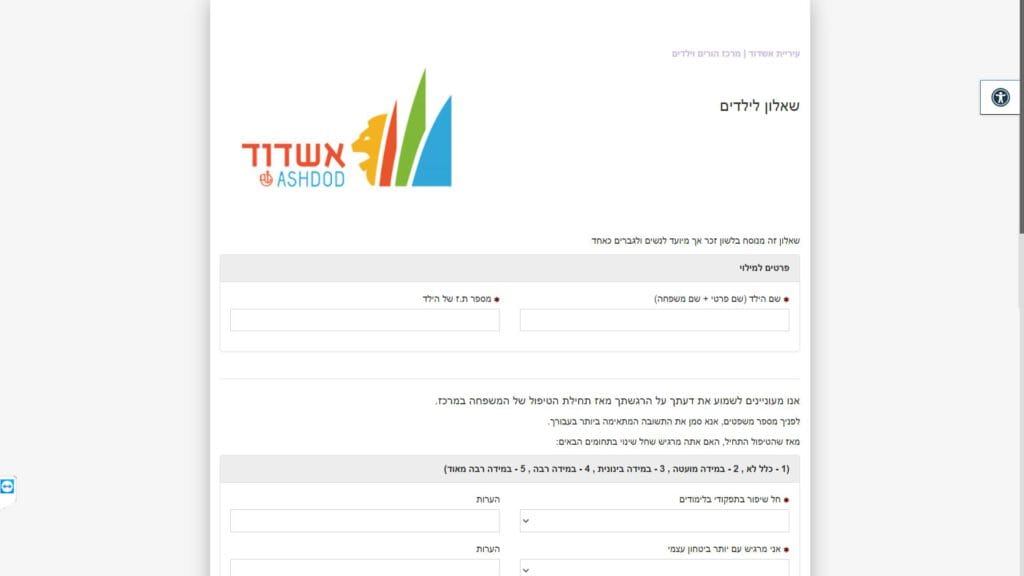 טופס שאלון לילדים - מרכז הורים וילדים חלופה נגישה - כרגע לא קיימת.