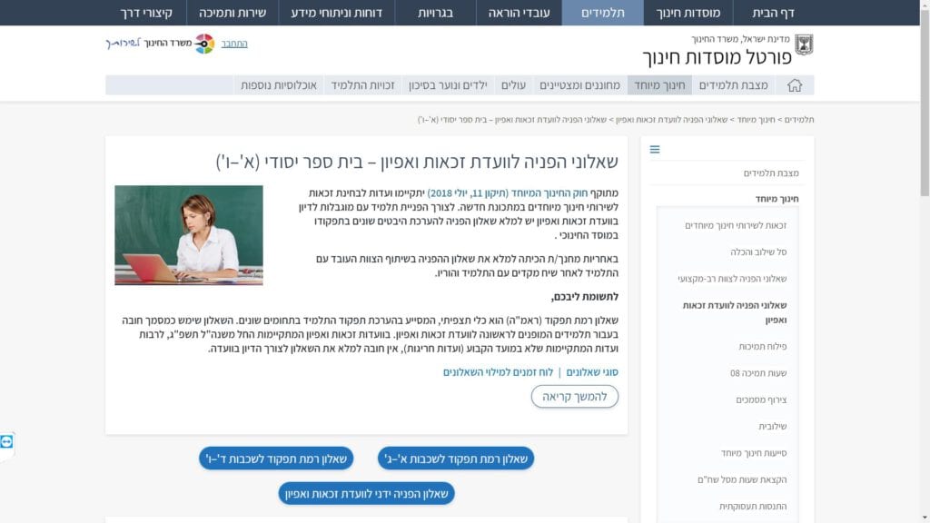 טופס שאלוני רמת תפקוד לוועדת זכאות ואפיון – בית ספר יסודי (א – ו) – מחוז צפון להורדה, הדפסה ומילוי מקוון