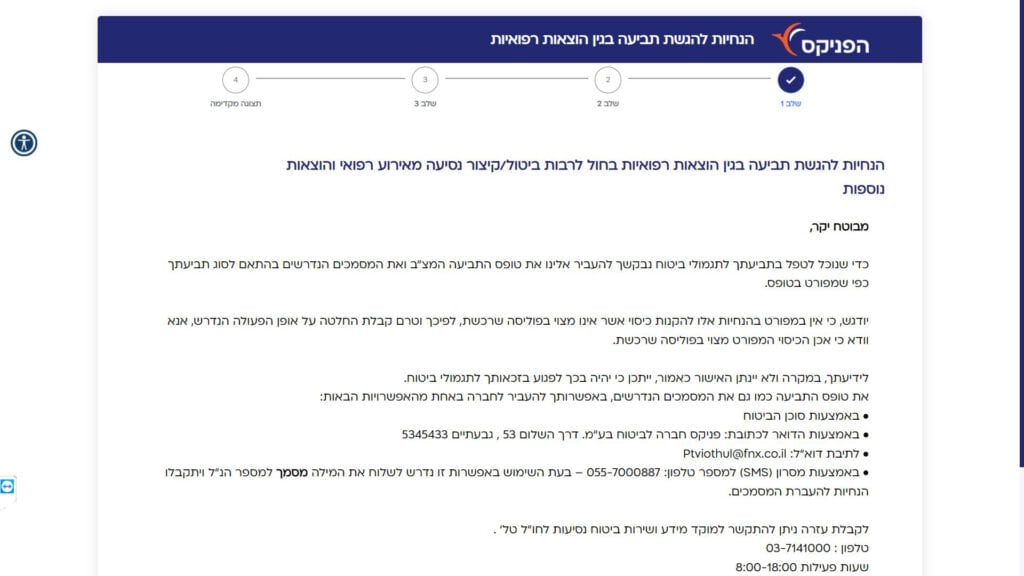 גוף שיתמוך בשאלות על טופס תביעה בגין הוצאות רפואיות בחו"ל לרבות ביטול / קיצור נסיעה מאירוע רפואי והוצאות נוספות - ביטוח בריאות