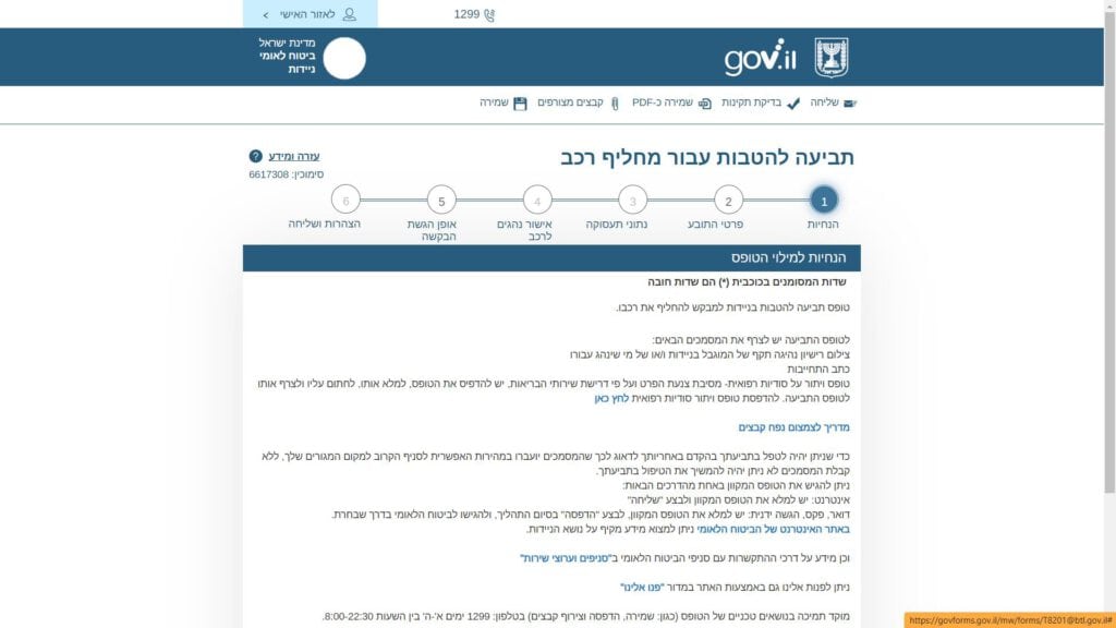 צילום מסך טופס תביעה להטבות למחליפי רכב עם הלוואה עומדת (8201) טופס מקוון