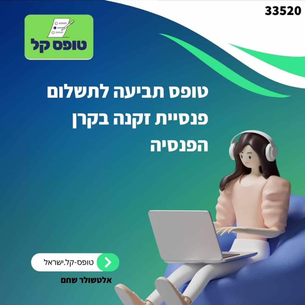 מטרת הטופס: הטופס מיועד למבוטחים שרוצים לבקש תשלום פנסיית זקנה מקרן הפנסיה שלהם. הטופס מאפשר למבוטח לציין את פרטיו האישיים והפיננסיים, לבחור באופציות קשורות לתשלומי הפנסיה, ולספק הצהרות חשובות בנוגע לזכויות ולהתחייבויות שבעת בקשת תשלום פנסיית זקנה.