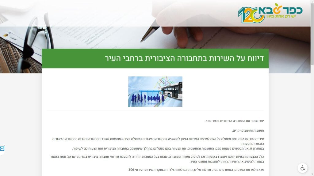 גוף שיתמוך בשאלות על טופס תחבורה ציבורית - דיווח על השירות בכפר סבא