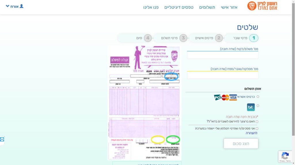 טופס תשלום אגרת שילוט חלופה נגישה - כרגע לא קיימת.