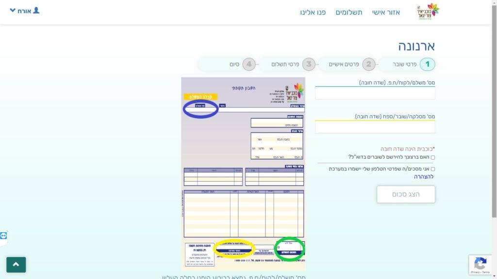 טופס תשלום ארנונה ושמירה חלופה נגישה - כרגע לא קיימת.