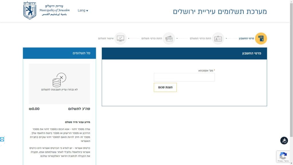 טופס תשלום ארנונה חלופה נגישה - כרגע לא קיימת.