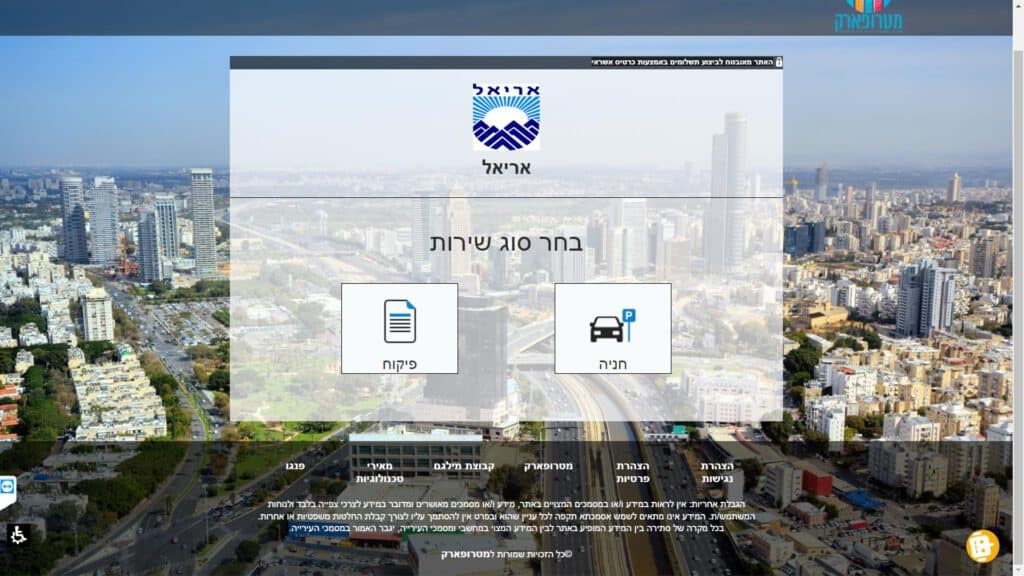 טופס תשלום וערעור על דוחות חניה ופיקוח חלופה נגישה - כרגע לא קיימת.