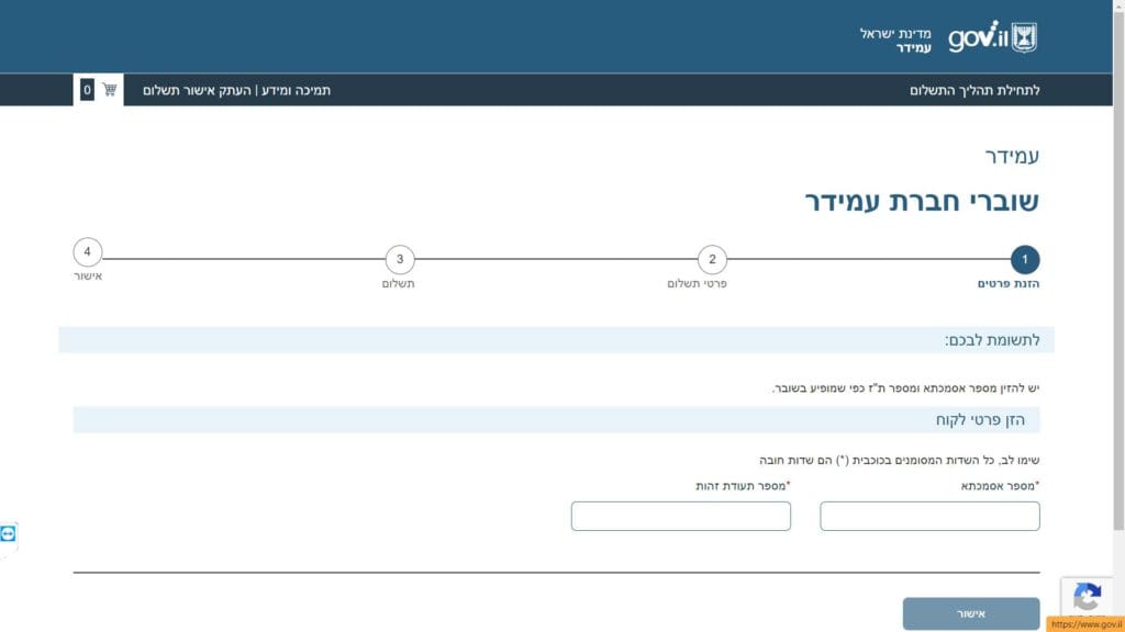 צילום מסך טופס תשלום למחזיקי שובר עבור דיור ציבורי וסיוע בשכר דירה (עמידר) טופס מקוון