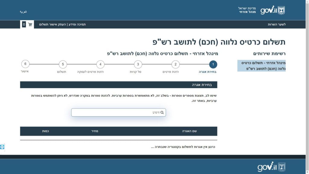 צילום מסך טופס תשלום עבור כרטיס נלווה חכם לתושב הרשות הפלשתינאית טופס מקוון