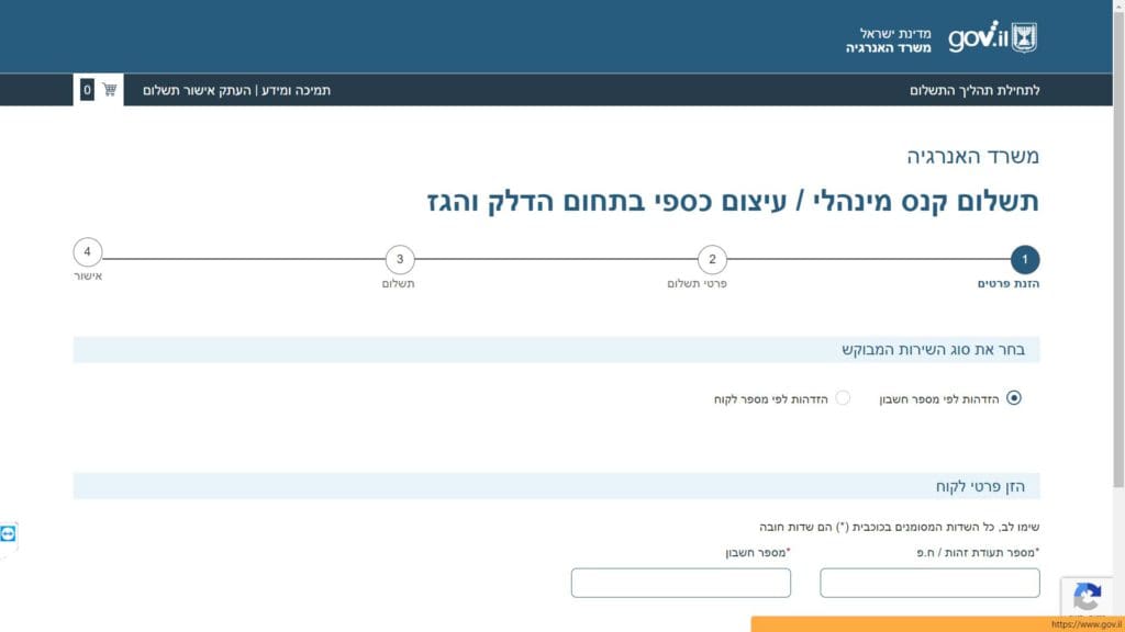 צילום מסך טופס תשלום קנס מינהלי קצוב בתחום הדלק והגפ"מ (גז פחממני מעובה - גז בישול ביתי) טופס מקוון