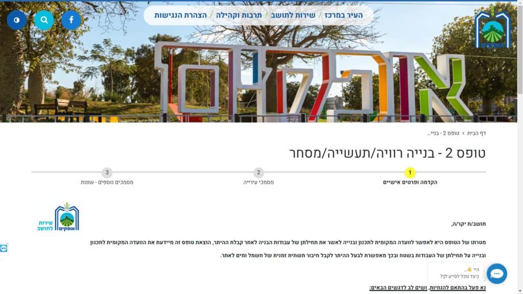 טופס קל » עיריות » עיריות בדרום » עיריית אופקים » הנדסה » טופס 2 – בנייה רוויה / תעשייה / מסחר