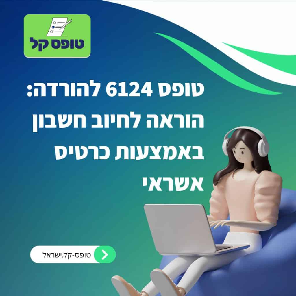 במידה ואתם צריכים עזרה עם טופס 6124 – הוראה לחיוב חשבון באמצעות כרטיס אשראי, ישנם מספר גופים ממשלתיים שיכולים לעזור לכם עם הטופס. ריכזנו בשבילכם רשימה של כל הגופים הממשלתיים שיכולים לעזור לכם עם הטופס.