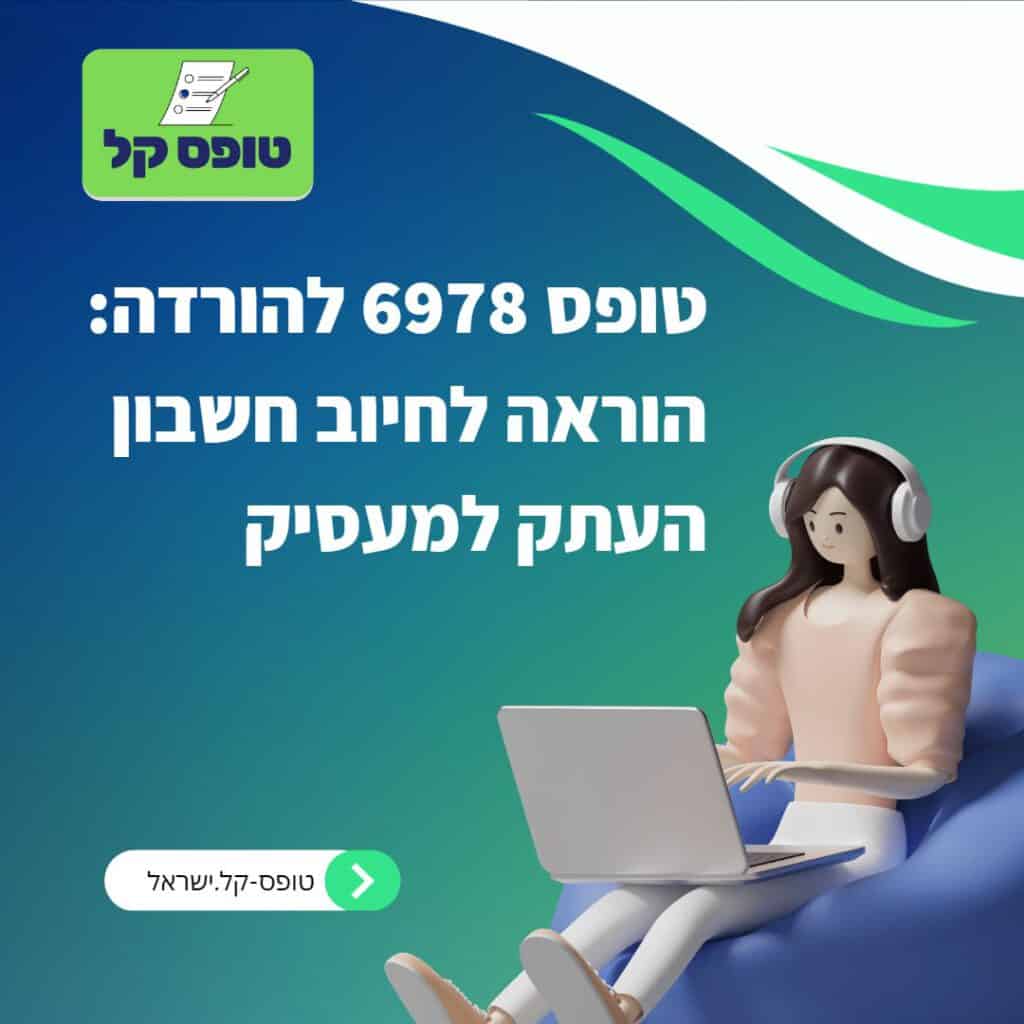 - הגוף הממשלתי האחרון שיכול לעזור לכם עם טופס 6978 הוא מוקד רשות התאגידים. אפשר לדבר עם מוקד רשות התאגידים במספר הטלפון 1-700-70-60-44. השירות הטלפוני פתוח בימי א׳ – ה׳ בין השעות 08:30- 12:30.