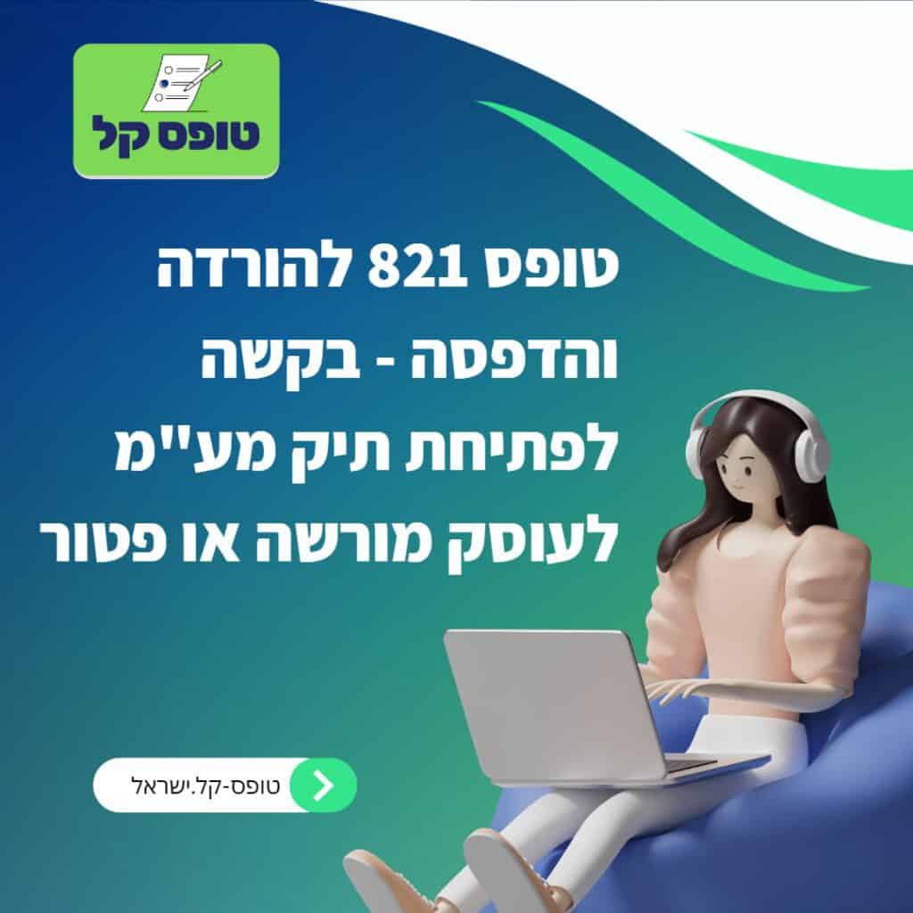מהו טופס 821 – בקשה לפתיחת תיק מע"מ לעוסק מורשה או פטור?